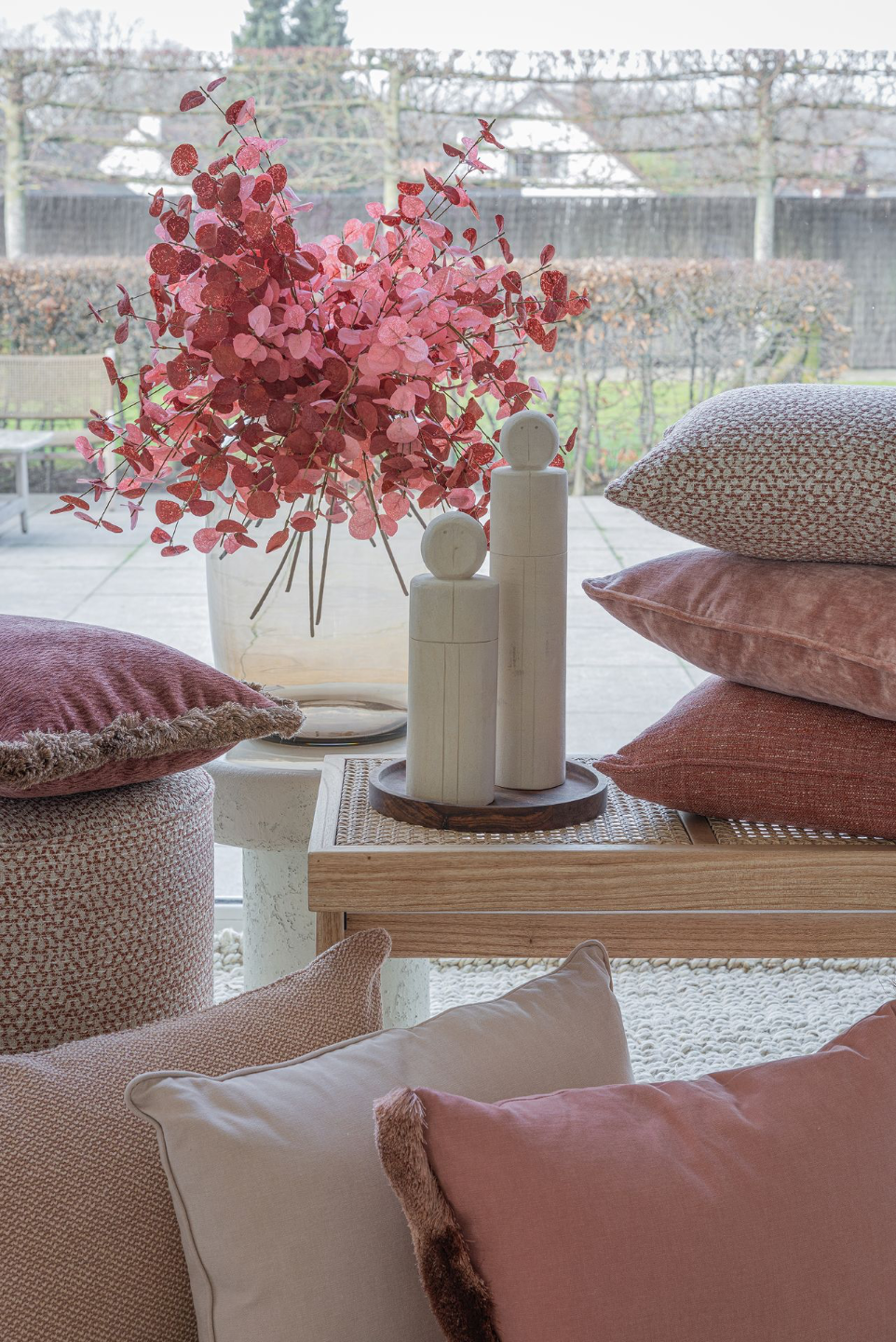 Met “By DW” breng ik mijn eigen lijn van op maat gemaakte kussens, poefs en zachte accessoires mee in het project. Elk stuk ontstaat uit een zorgvuldige keuze van stoffen en kleuren die passen bij de sfeer die jij of jouw klant wil neerzetten. Geen standaardstukken, maar persoonlijke combinaties die ik opbouw tot het geheel klopt.